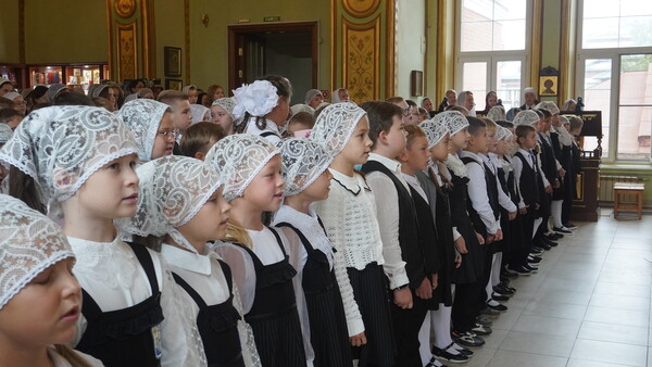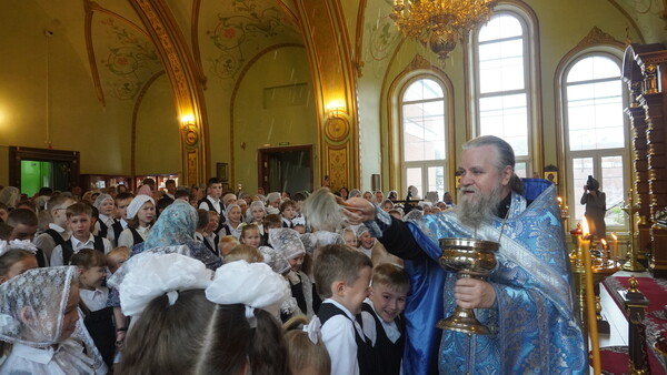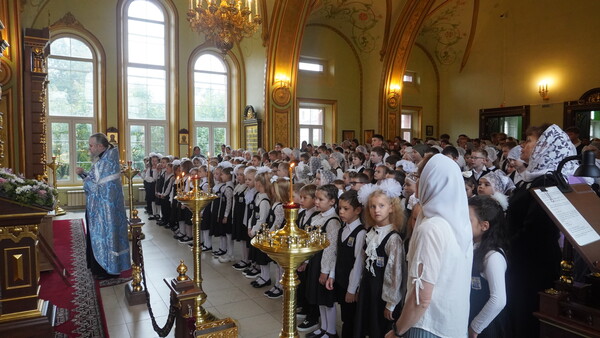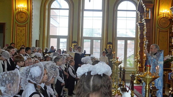 Праздничные мероприятия начались в домовом храме гимназии в честь святой великомученицы Екатерины. Во время молебнов (а их было три — в разных параллелях) сотни ребят просили у Господа благословение на новый учебный год.
