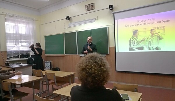 Пока у 8-9 классов шла игра, профориентолог Андрей Белоусов провел встречу с родителями. После игры учащиеся разошли по аудиториям, где для них продолжилось общение, но уже с другими людьми — мамами и папами гимназистов, которые также рассказывали о своих профессиях, как и на ранее состоявшихся встречах. Только это были представители уже других сфер деятельности. Ребята послушали главного специалиста отдела ХВП филиала «Кировский» ПАО «Т Плюс» Марину Аркадьевну Овчинникову (а по совместительству одного из двигателей проекта «Путь профессионала), главного архитектора г.Кирова Ирину Юрьевну Прозорову, музыкального руководителя детского сада, педагога Ирину Игоревну Мамонову, специалиста по управлению персоналом Ольгу Леонидовну Поповуи других специалистов.