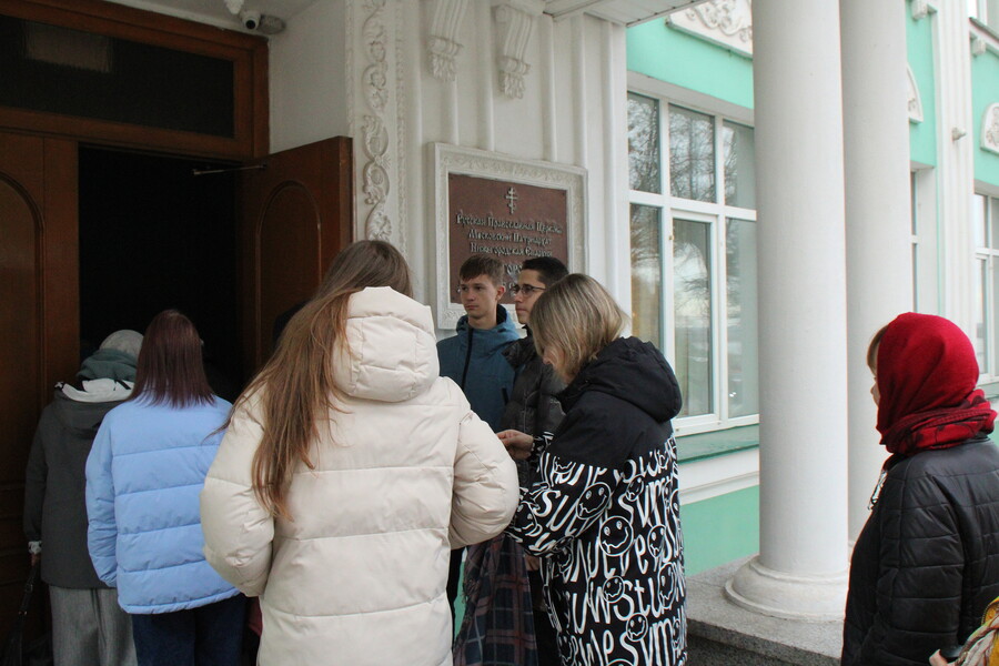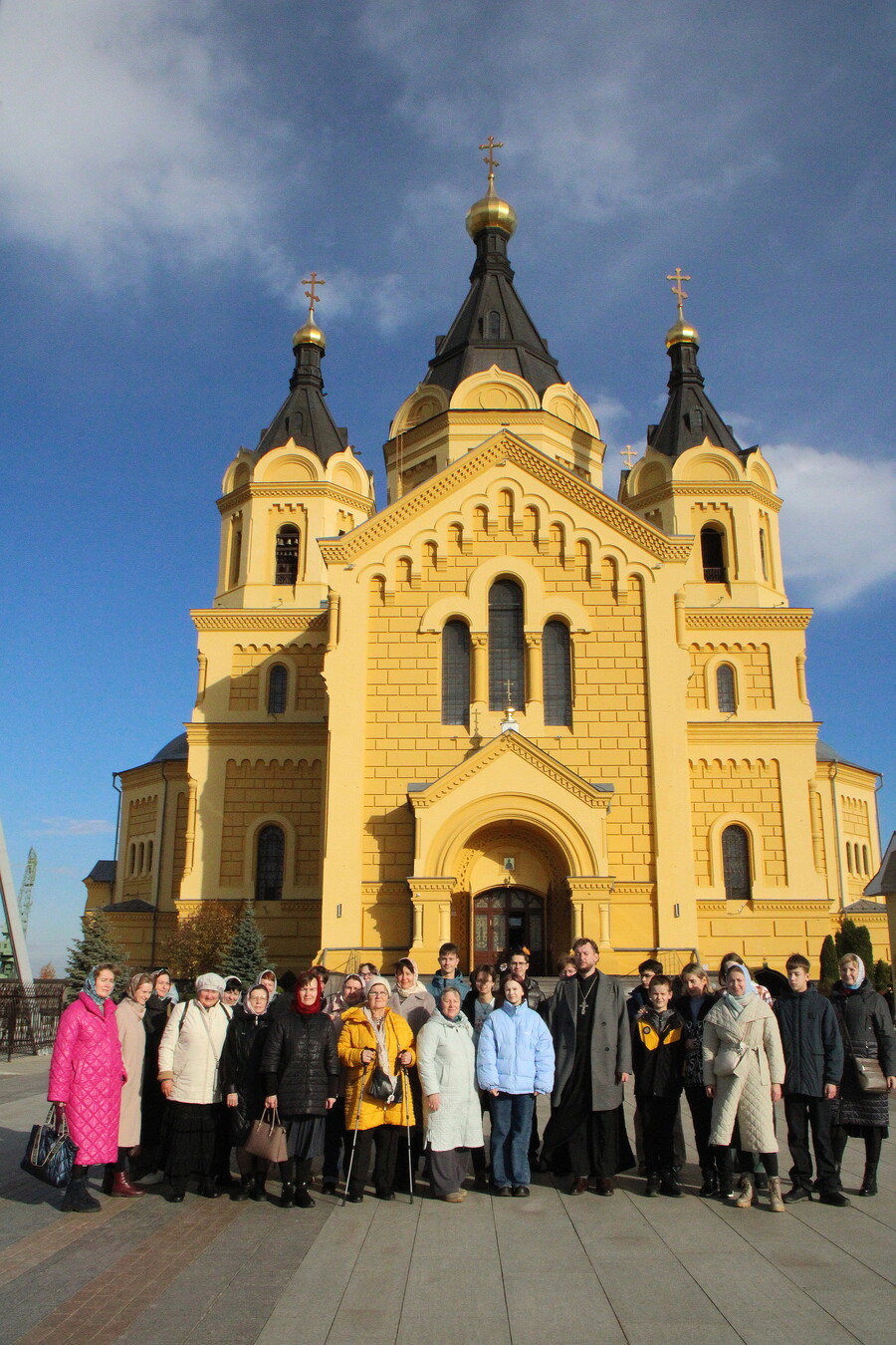 Наше пребывание на Нижегородской земле мы начали с посещения кафедрального собора во имя святого благоверного князя Александра Невского, где уже сейчас установлено около 130 икон Пресвятой Богородицы из 187 планируемых по благословению Митрополита Нижегородского и Арзамасского Георгия. По высоте (87 м) собор занимает третье место среди храмов России после Храма Христа Спасителя в Москве и Исаакиевского собора в Санкт-Петербурге. Эта экскурсия как будто задала правильный вектор нашей поездке: несмотря на то, что одной из ее основных целей была профориентационная, начали мы с главного — прежде всего поклонились святыням.