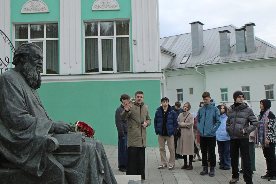 Также паломникам рассказали о Николае (Кутепове), Митрополите Нижегородском и Арзамасском, памятник которому расположен перед зданием семинарии. Именно трудами Владыки она появилась в 1995 году.