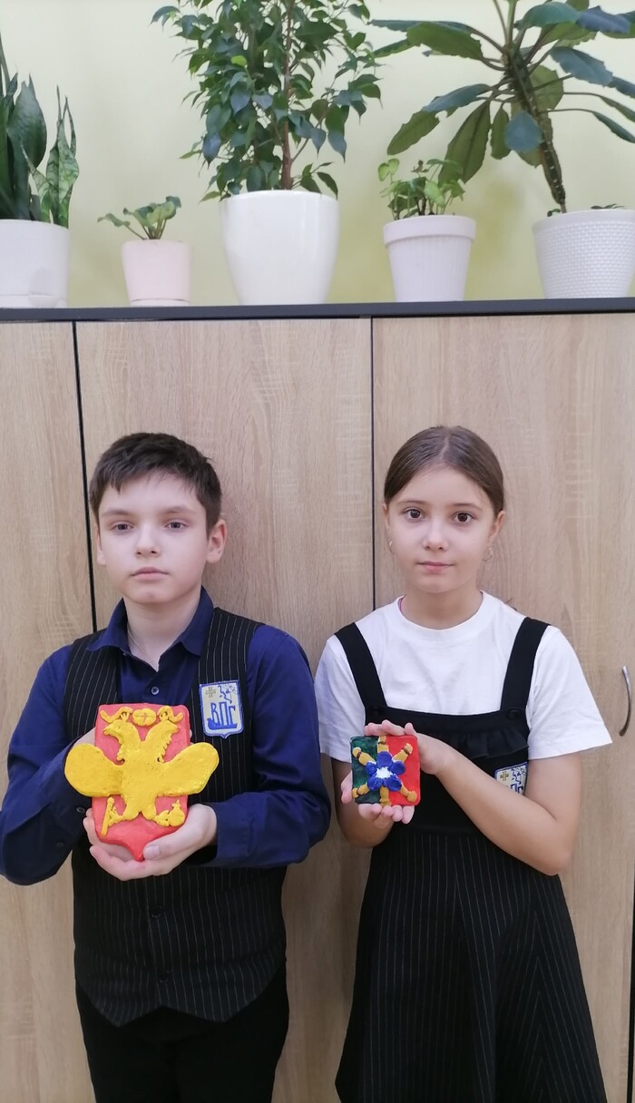 Третьеклассники Анна Бобылева («Герб Арбажского района Кировской области»), Яна Коршунова («Птицы России») и Захар Изместьев («Герб Российской Федерации») очень старались: лепили, раскрашивали, украшали свои работы.