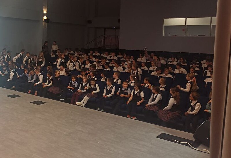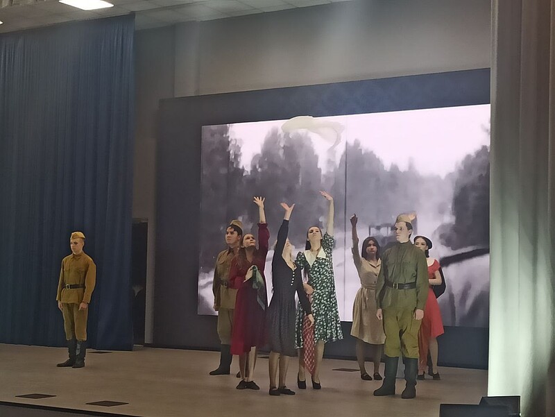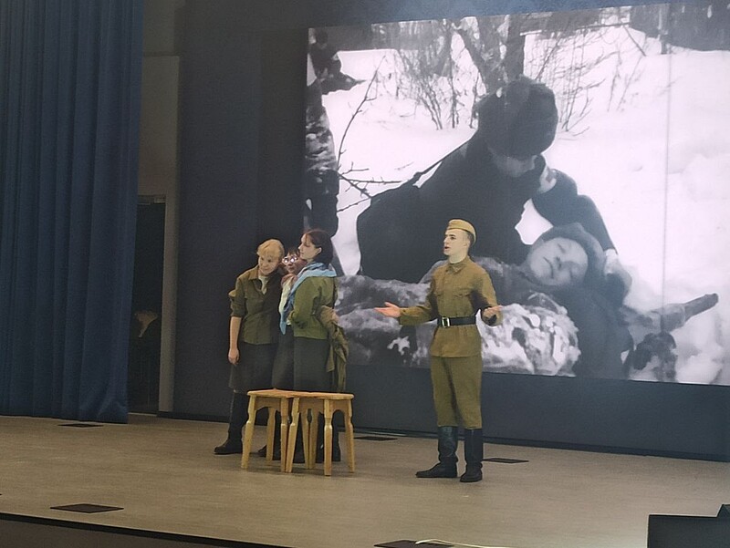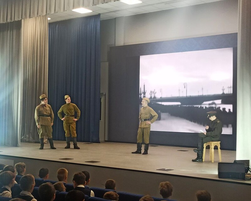 4 декабря артисты школьного театр ВПГ «Жаворонок» выступили перед учащимися 5-6 классов кировского Инженерно-железнодорожного лицея, показав спектакль «Пасха 45-го — Победа!»